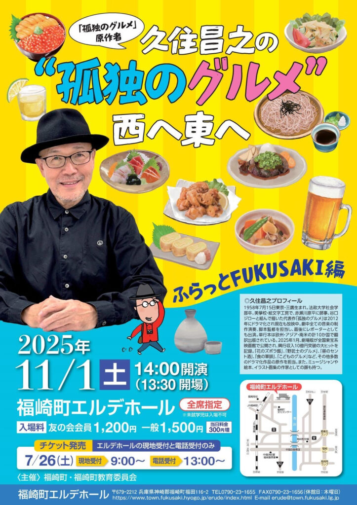 兵庫県福崎町で開催される「講演「久住昌之の”孤独のグルメ”西へ東へ」へ登壇します。